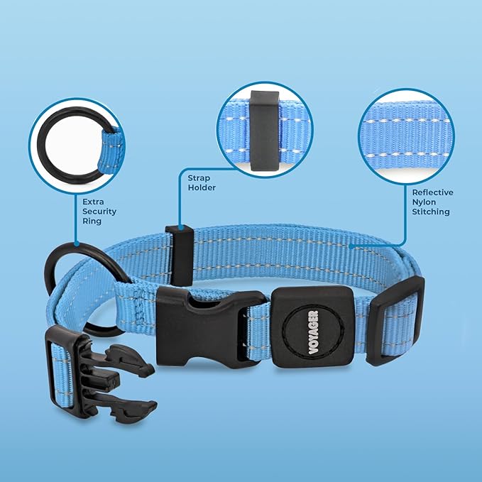 Voyager Reflective Dog Leash Collar Set with Neoprene Handle Supports Small, Medium, and Large Breed Puppies, Cute and Heavy Duty for Walking, Running, and Training - Baby Blue, S