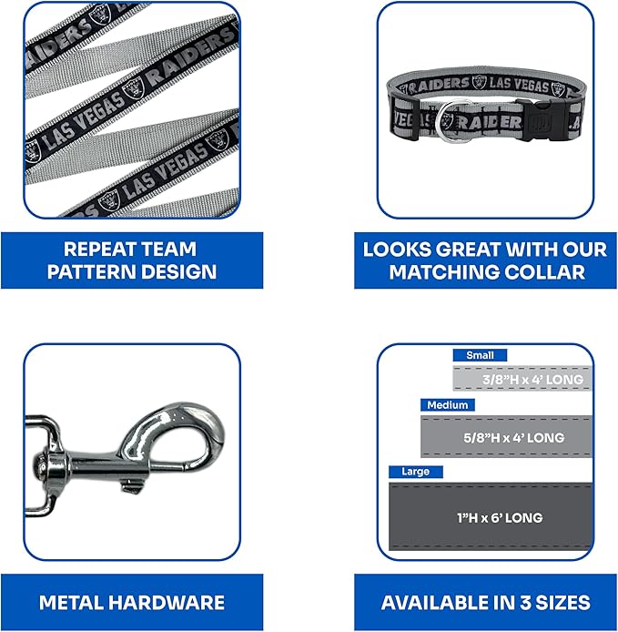 NFL PET Leash Las Vegas Raiders Dog Leash, Medium Football Team Leash for Dogs & Cats. A Shiny & Colorful Cat Leash & Dog Leash Licensed by The NFL