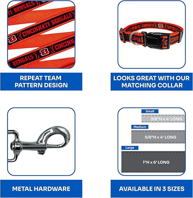 NFL PET Leash Cincinnati Bengals Dog Leash, Medium Football Team Leash for Dogs & Cats. A Shiny & Colorful Cat Leash & Dog Leash Licensed by The NFL