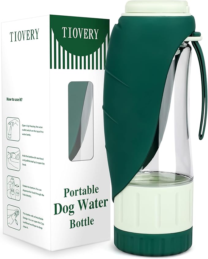 • 2-LAYERS Dog Water Bottle and Food Container: Which can hold 12OZ water and 4OZ food. Enough for taking your small and medium breed dog for outdoor walking, hiking, traveling