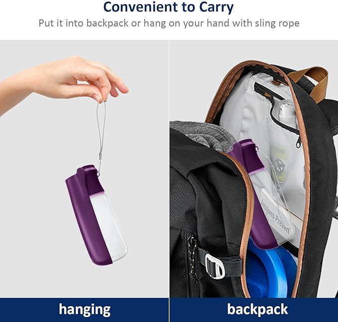 • [Convenient to Carry]: Enough capacity and compact water bottle design is great for your pet dog or cat when outdoor walking, running, hiking, traveling or playing, etc. You can put it into backpack or hang on your hand with sling rope, very easy to carry to anywhere you want.