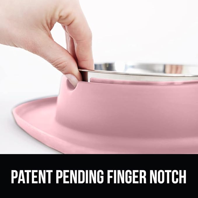• BUILT TO LAST: durably designed silicone mat and stainless steel bowls are built to last; a convenient finger notch provides easy access to the dishes, making it simple to access and remove the bowls when filling with food or during cleaning