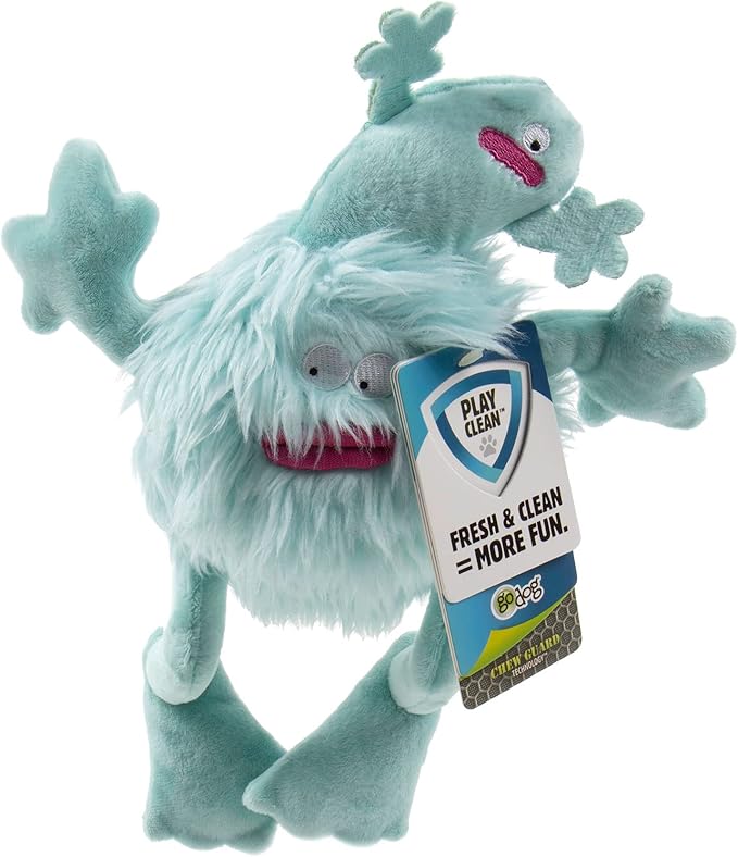 goDog PlayClean Germs Squeaky Plush Dog Toy with Odor-Eliminating Essential Oils, Chew Guard Technology - Seafoam, Large