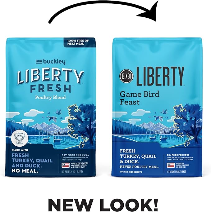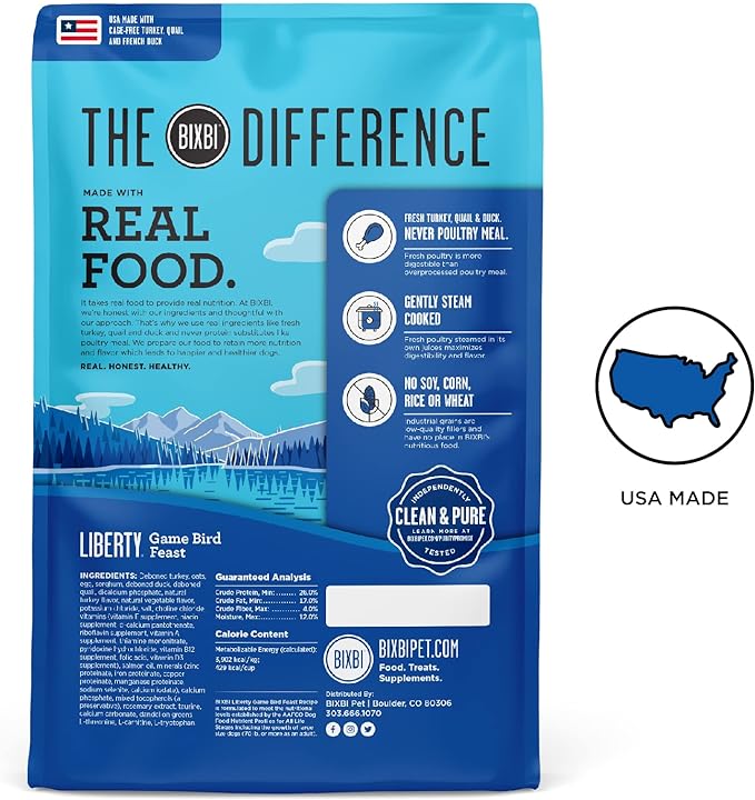 BIXBI Liberty Grain Friendly Dry Dog Food, Game Bird Feast Recipe, 22 lbs - Fresh Meat, No Meat Meal, No Fillers for Easy Digestion - USA Made