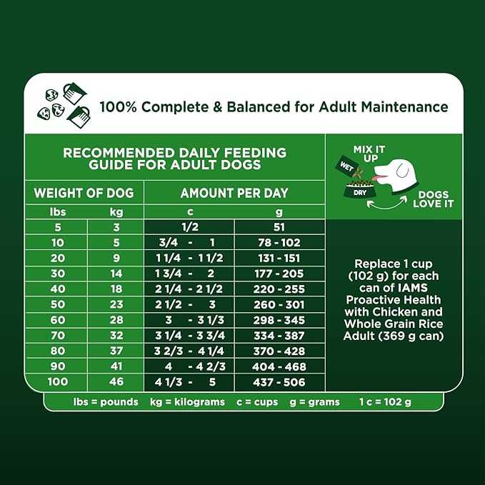 • 100% Nutrition For Adult Dogs: Support your dog’s vitality to help them look, feel, and play their best. Veterinarians recommend IAMS.