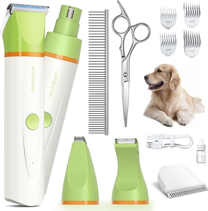 Dog Grooming Clippers Kit, All-in-One Low Noise Slient Electric Clippers Rechargeable Cordless Waterproof Small Paw Trimmer Nail Grinder Quiet Pet Shaver for Dogs Cats at Home