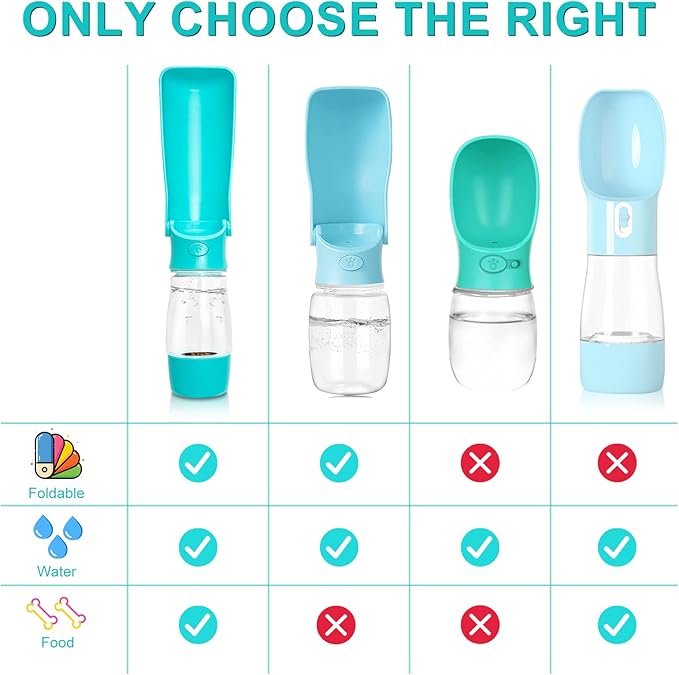 • ✅2 in 1 PORTABLE DESIGN: Our portable dog water bottle with food container not only to hold water, but also to carry food, which can hold 11oz water and 200g food, perfect for your pet's need for water and food with bowl . 180 degree folding design, compact, lightweight and portable making it easy to take your pet on the go.