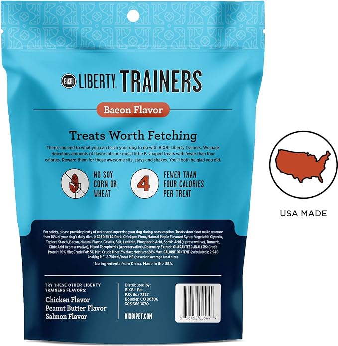 BIXBI Liberty Trainers, Bacon (12.5 oz, 1 Pouch) - Small Training Treats for Dogs - Low Calorie and Grain Free Dog Treats, Flavorful Pocket Size Healthy and All Natural Dog Treats