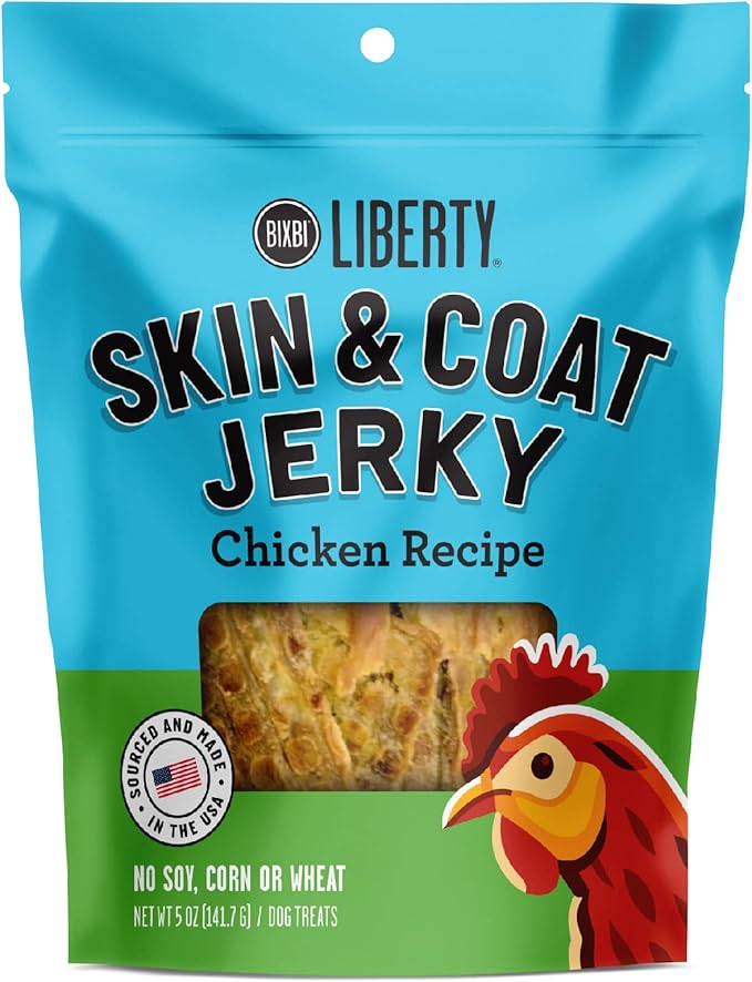BIXBI Liberty Skin & Coat Support Chicken Jerky Dog Treats 5 oz - USA Made, Grain Free, Antioxidant Rich to Support Shiny, Full Bodied Coats