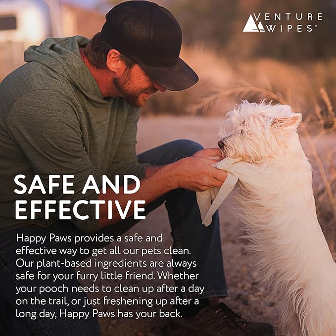 Venture Wipes Happy Paws - Natural Pet Wipes for Dogs and Cats - Biodegradable Grooming Wipes for Paws, Eyes, Ears, and More - Large Cleansing Cloths for Pet Care Essentials (Pull Pack - 40 Count)
