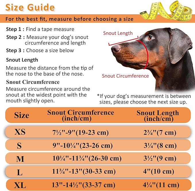 • Satisfaction Assurance- We offer 3 Months Assurance and 60 Days Money-back Promise. Please measure your dog's snout circumference and snout length before buying. If you have any questions, please reach us. Our customer care specialists are waiting to assist you and your pet with your product needs.