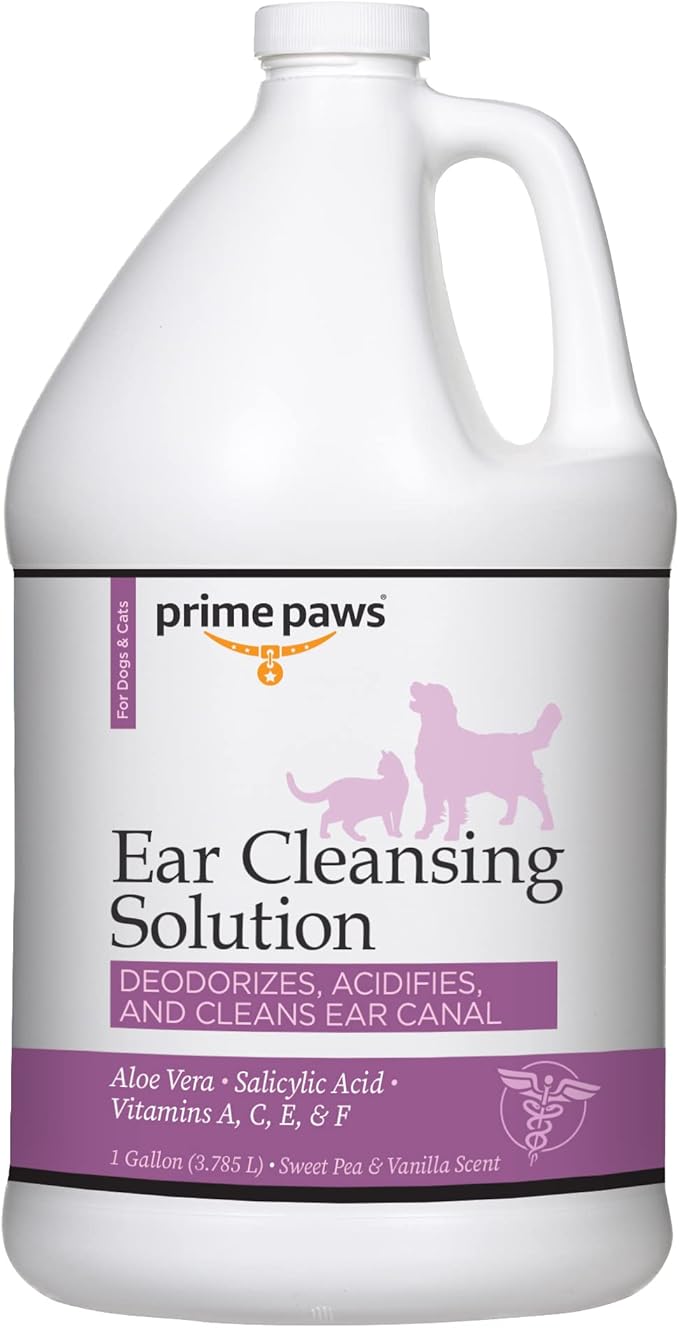 Ear Cleansing Solution for Dogs & Cats - Deodorizing Dog Cleaner with Aloe Vera Vitamins Professional Pet Flush Cleans Acidifies Canal Complete Care 1 gal, White (PRIM1059)