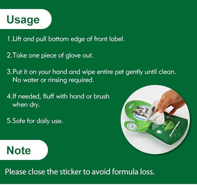 • Soothing Grooming Experience: These high-quality wet wipe gloves are designed to soothe and comfort your pet during grooming - Whether you're managing itchy skin or minor wounds, these dog bath wipes are up to the task, providing a gentle and soothing experience