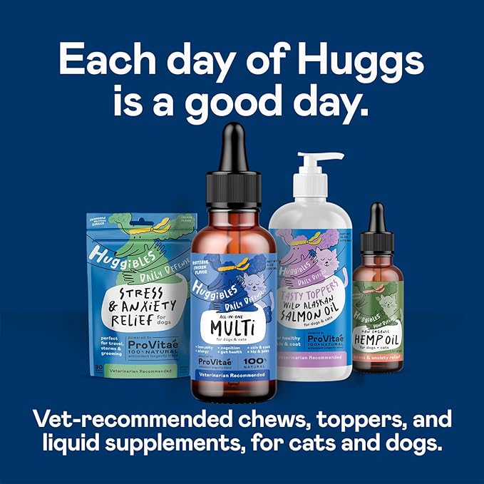 • LOVE YOUR PET, GIVE A HUGG: Huggibles liquid pet supplements are formulated to give more to the dogs and cats we love, all in a tasty chicken flavor they love. 100% Satisfaction Guaranteed!