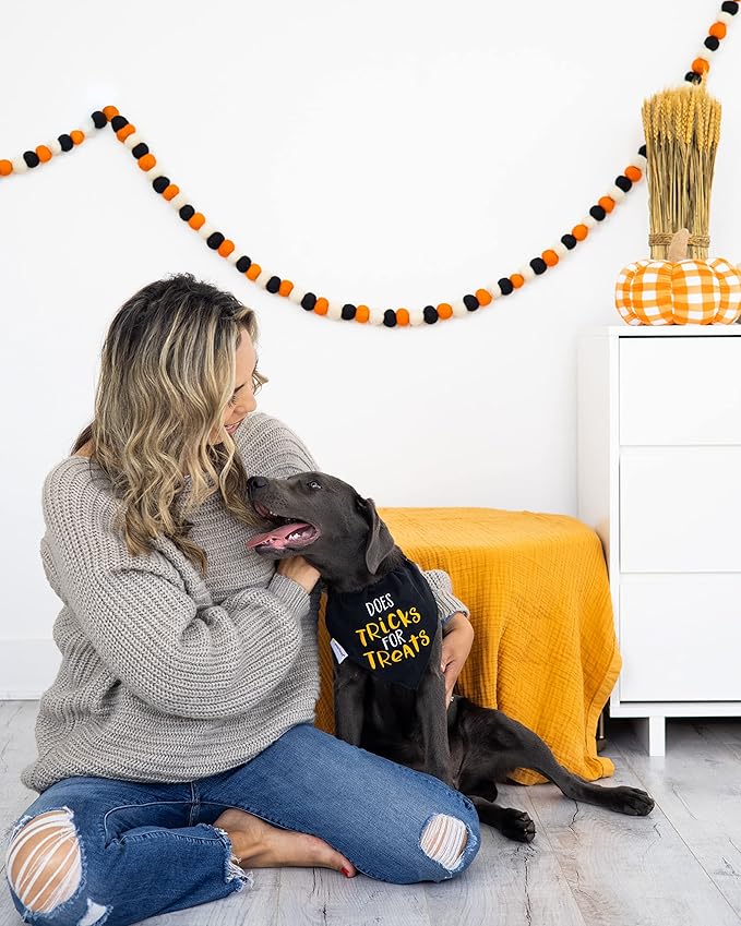 • Your dog will be the cutest trick-or-treater or the star of your costume party with this adorable trick for treat bandana by Pearhead!