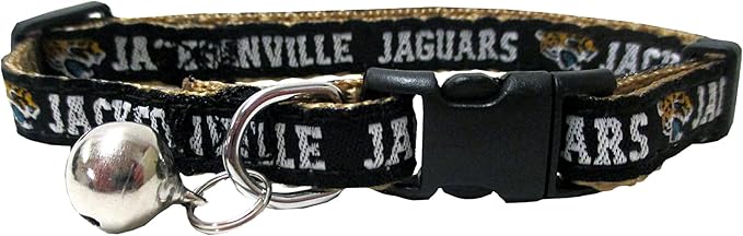 NFL CAT Collar Jacksonville Jaguars Satin Cat Collar Football Team Collar for Dogs & Cats. A Shiny & Colorful Cat Collar with Ringing Bell Pendant
