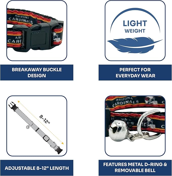 NFL CAT Collar Arizona Cardinals Satin Cat Collar Football Team Collar for Dogs & Cats. A Shiny & Colorful Cat Collar with Ringing Bell Pendant
