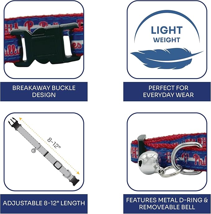 MLB CAT Collar Philadelphia Phillies Satin Cat Collar Baseball Team Collar for Dogs & Cats. A Shiny & Colorful Cat Collar with Ringing Bell Pendant