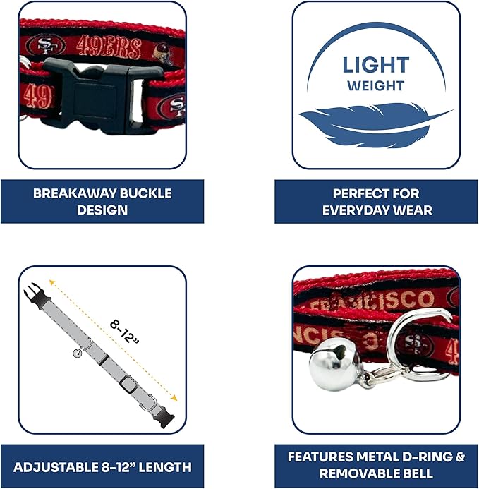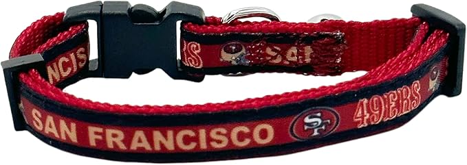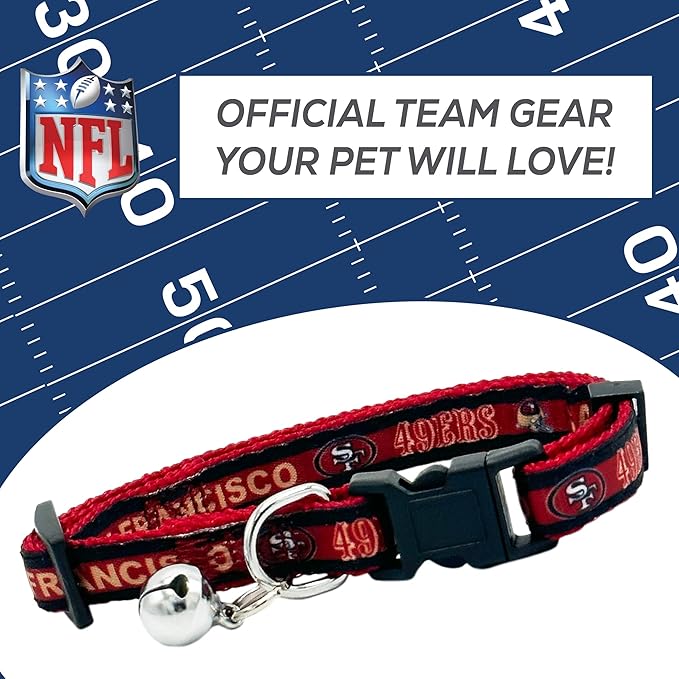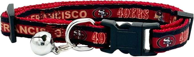 NFL CAT Collar San Francisco 49ers Satin Cat Collar Football Team Collar for Dogs & Cats. A Shiny & Colorful Cat Collar with Ringing Bell Pendant