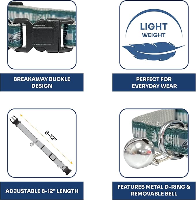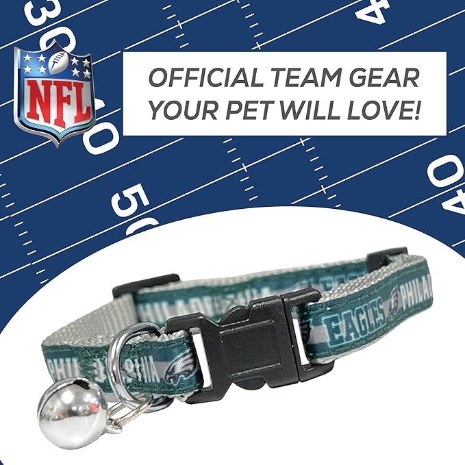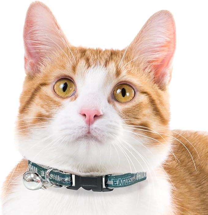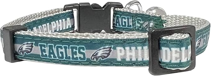 NFL CAT Collar Philadelphia Eagles Satin Cat Collar Football Team Collar for Dogs & Cats. A Shiny & Colorful Cat Collar with Ringing Bell Pendant
