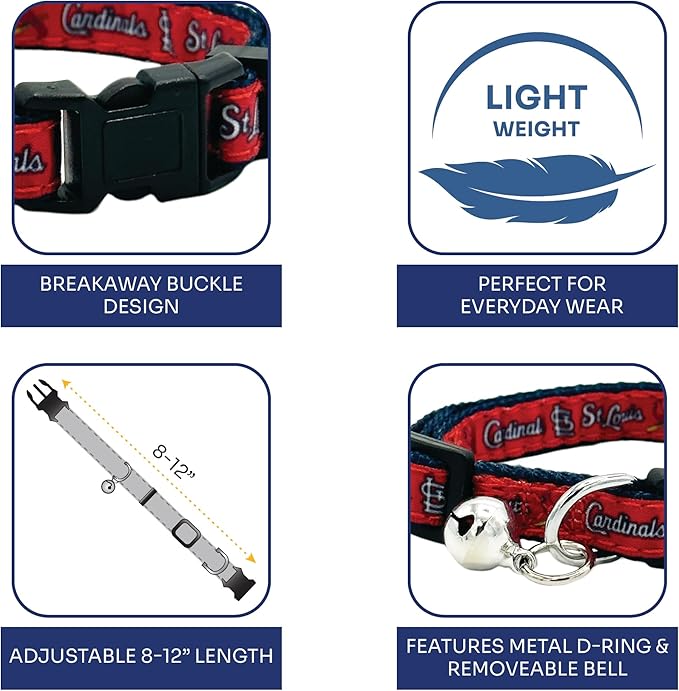 MLB CAT Collar St Louis Cardinals Satin Cat Collar Baseball Team Collar for Dogs & Cats. A Shiny & Colorful Cat Collar with Ringing Bell Pendant