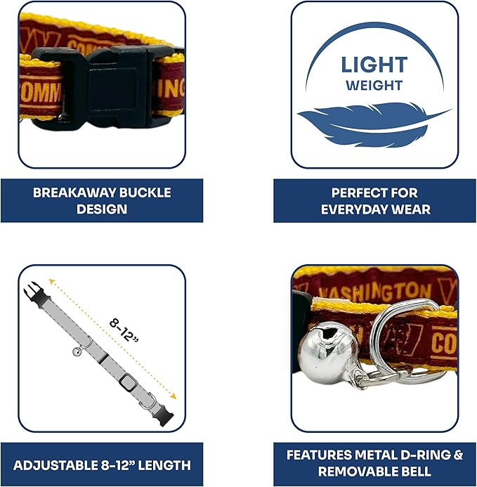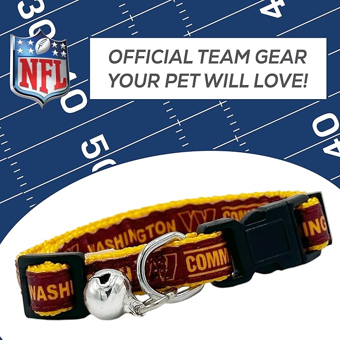 Pets First NFL CAT Collar Washington Commanders Satin Cat Collar Football Team Collar for Dogs & Cats. A Shiny & Colorful Cat Collar with Ringing Bell Pendant, Team Color (WAC-5034)