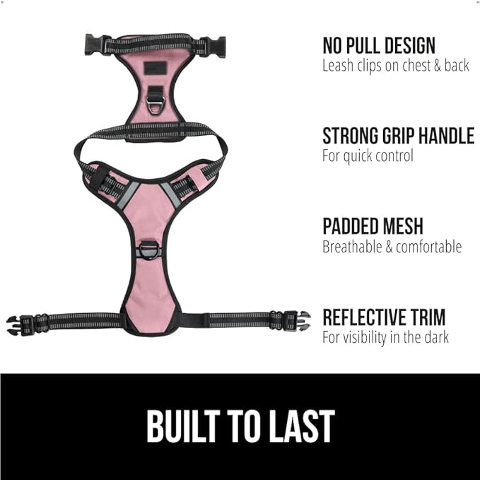 Gorilla Grip No Pull Comfortable Durable Dog Harness with Handle, Pet Leash Clips on Chest or Back for Walking, Padded Mesh Pets Vest, Adjustable Reflective Straps, Puppy Training, Pink