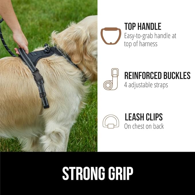 Gorilla Grip No Pull Comfortable Durable Dog Harness with Handle, Pet Leash Clips on Chest or Back for Walking, Padded Mesh Pets Vest, Adjustable Reflective Straps, Puppy Training, Black