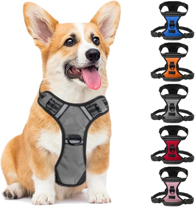 Gorilla Grip Comfortable Durable Dog Harness with Handle, Pet Leash Clips on Chest or Back for Walking, Padded Mesh Pets Vest, Adjustable Reflective Straps, Puppy Training, Gray