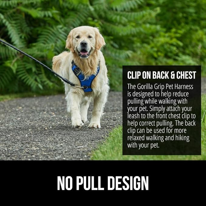 Gorilla Grip No Pull Comfortable Durable Dog Harness with Handle, Pet Leash Clips on Chest or Back for Walking, Padded Mesh Pets Vest, Adjustable Reflective Straps, Puppy Training, Blue