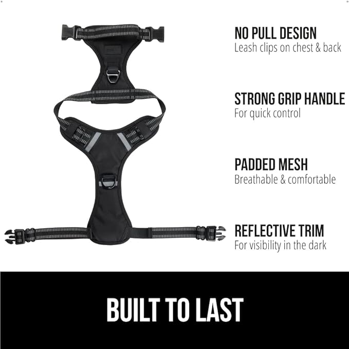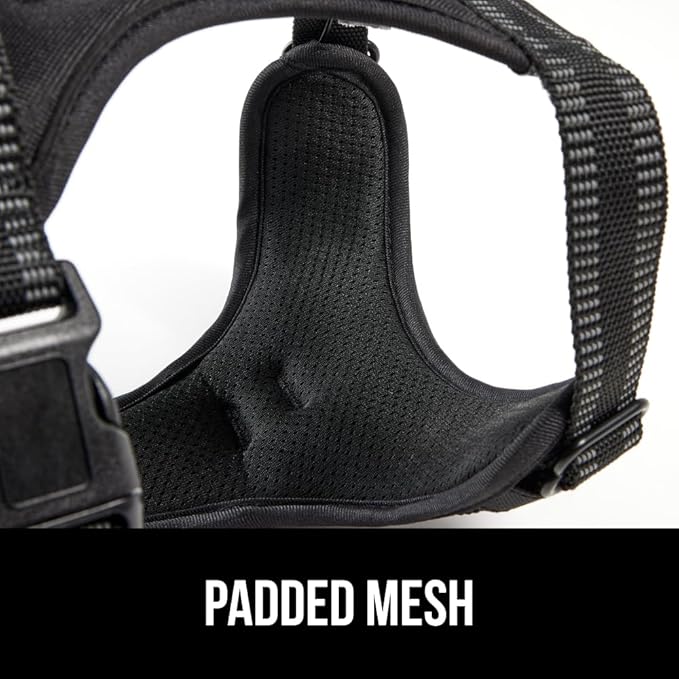 Gorilla Grip Comfortable Durable Dog Harness with Handle, Pet Leash Clips on Chest or Back for Walking, Padded Mesh Pets Vest, Adjustable Reflective Straps, Puppy Training, Black