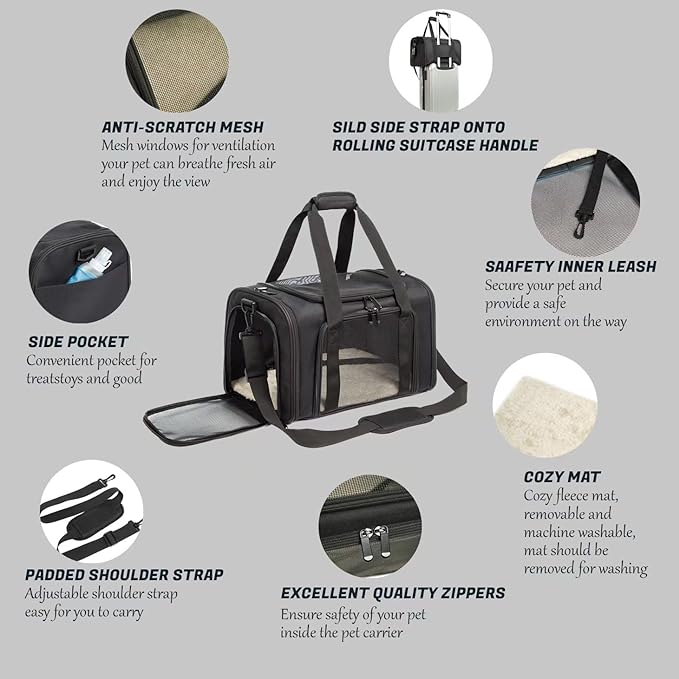 • NO AIRLINE APPROVED - The large pet carrier is only suitable for daily travel, car seat journey and pet hospital etc.