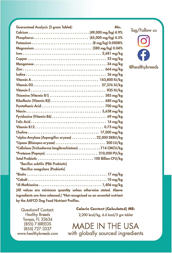 • Healthy Breeds Probiotics Tabs supports optimum digestive function essential to maintaining overall health