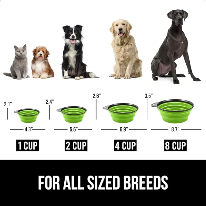 • Large Capacity Bowl: when on the go, it is especially important to bring enough water for your pet; the bowl comes in four convenient sizes 1 cup, 2 cups, 4 cups, and 8 cups, so you can find the best capacity bowl for your pet