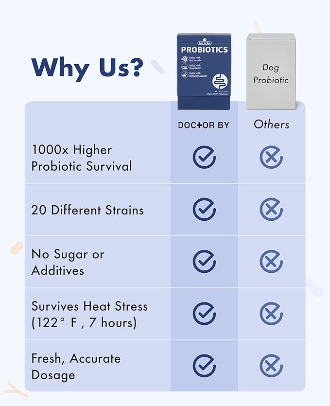 • Dog Probiotic Supplement : The lack of probiotics is the cause of diseases like diahrrea or constipation and DoctorBy Probiotics is focused on dog’s intestine health