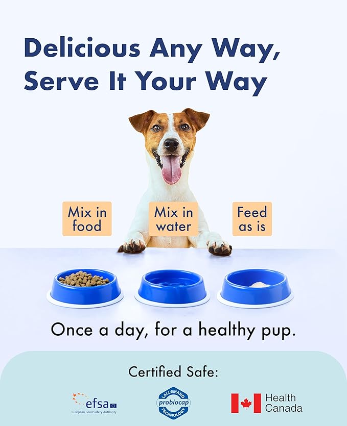 • Easy to Feed : "1 Day 1 Sachet" With easily absorbable powder type probiotic, you can easily treat your dogs with their favorite meals, foods or water! Safe and Sanitary feeding with individual packaging also