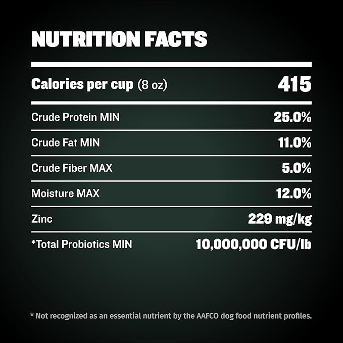 • SUPER PREMIUM INGREDIENTS: Our 25/11 High-Protein Dog Food prioritizes health with nutrient-rich grains like barley and oats, alongside natural vegetables such as sweet potatoes, tomatoes, and kelp. Fortified with essential minerals (Zinc, Iron, Copper, Manganese, Cobalt, Calcium) and vitamins A, B12, C, D, E, K, and enhanced with postbiotics and probiotics, it supports digestive health and immunity, offering comprehensive nutrition for your dog's vitality.