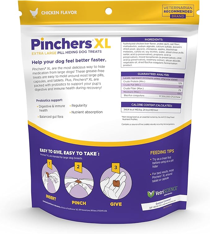 VETRISCIENCE Pinchers XL Pill Hiding Treats for Dogs – Extra Large Pill Hiders Probiotics, Great for Medicine, Large Capsules and Tablets