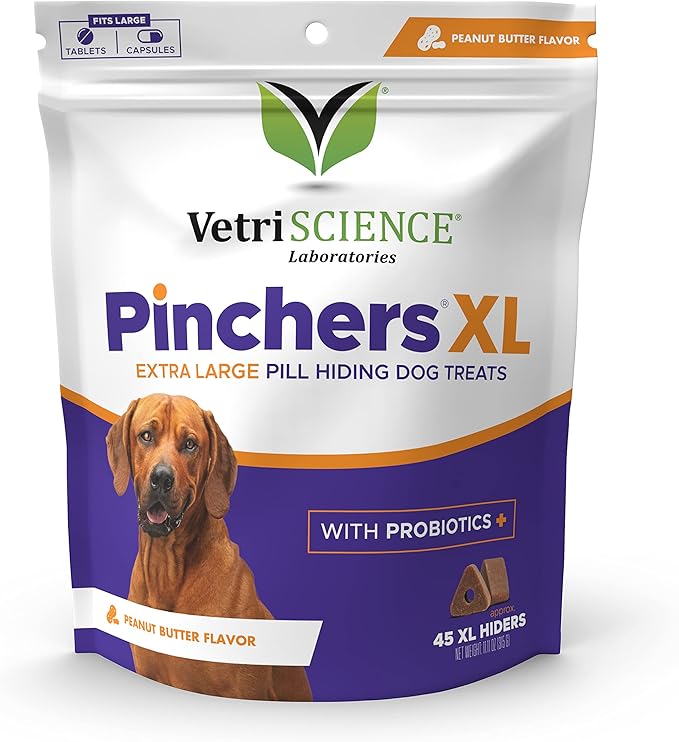 VETRISCIENCE Pinchers XL Pill Hiding Treats for Dogs – Extra Large Pill Hiders with Probiotics, Great for Medicine, Large Capsules and Tablets