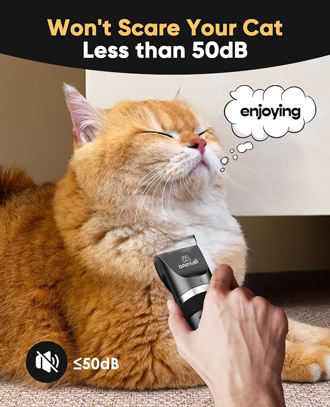 oneisall Cat Clippers for Matted Hair, Quiet Cat Shaver for Long Hair, Cordless Cat Hair Trimmer for Grooming, 2 Speed Pet Shaver Cat Grooming Kit for Cats Small Dogs Animals (Black)…