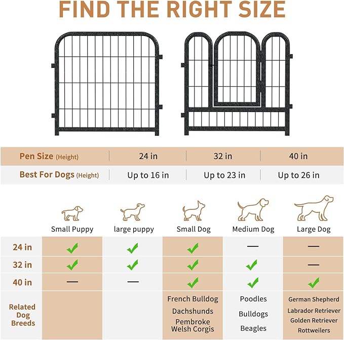 • 【ANTI-RUST & STABLE】The dog fences for the yard take in new techonologh that crafted with silver powder-coated on black heavy-duty thickened iron, come to be highly rust & corrosion resistant, waterproof and anti UV. Enable to increase longevity and durability whatever indoor or outdoor. Coupled with heavy-duty thickened metal pipes add to the stability of the dog pen.