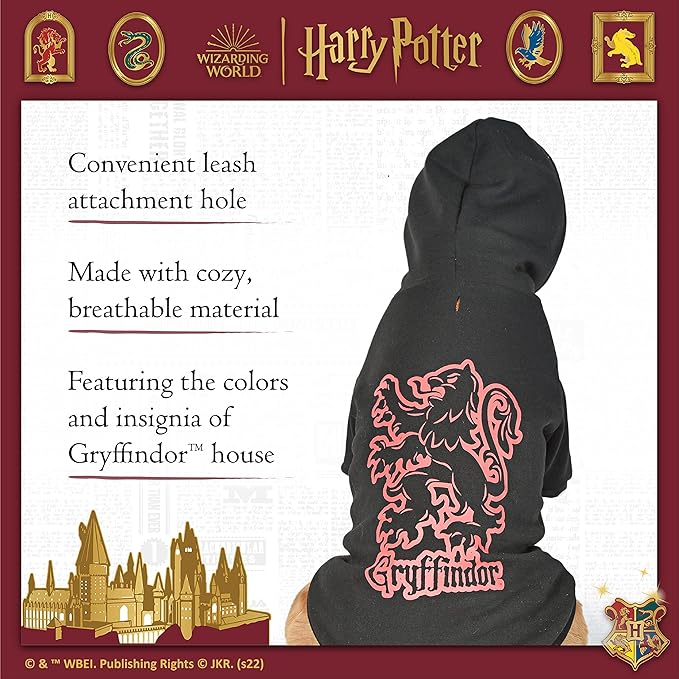 • OFFICIAL HARRY POTTER LICENSED PET ACCESSORIES - This fun design is sure to enchant the pet of any HARRY POTTER fan. The Gryffindor Dog Hoodie will delight both you and your fur-baby
