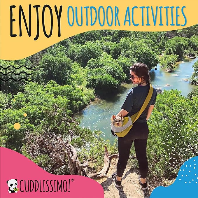 • 🐶 PERFECT FOR MEDIUM PETS - Cuddlissimo! pet sling carrier is designed for medium sized dogs or cats, up to 12 pounds in weight. This dog sling has a padded bottom, and the neck opening is fully adjustable.