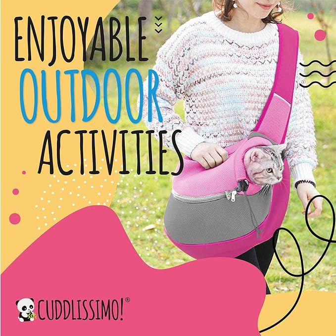 • 🐶 PERFECT FOR MEDIUM PETS - Cuddlissimo! pet sling carrier is designed for medium sized dogs or cats, up to 12 pounds in weight. This dog sling has a padded bottom, and the neck opening is fully adjustable.
