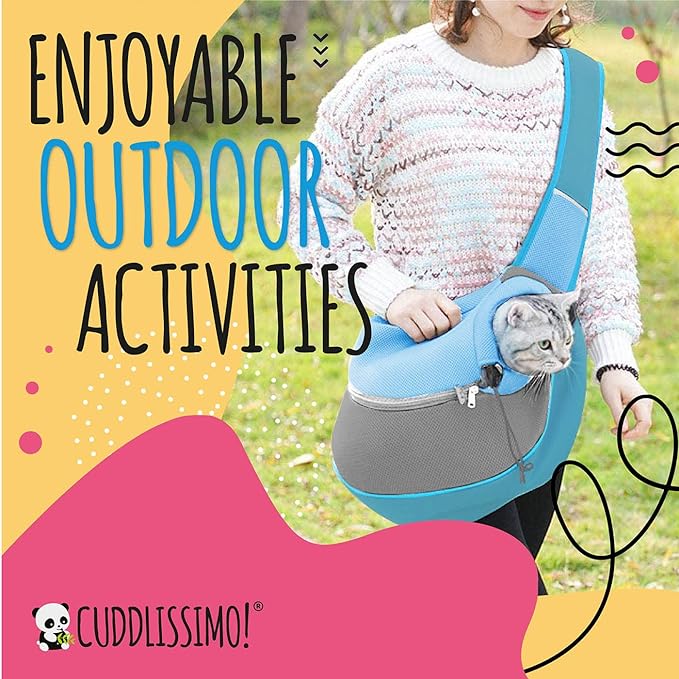 • 🐶 PERFECT FOR MEDIUM PETS - Cuddlissimo! pet sling carrier is designed for medium sized dogs or cats, up to 12 pounds in weight. This dog sling has a padded bottom, and the neck opening is fully adjustable.