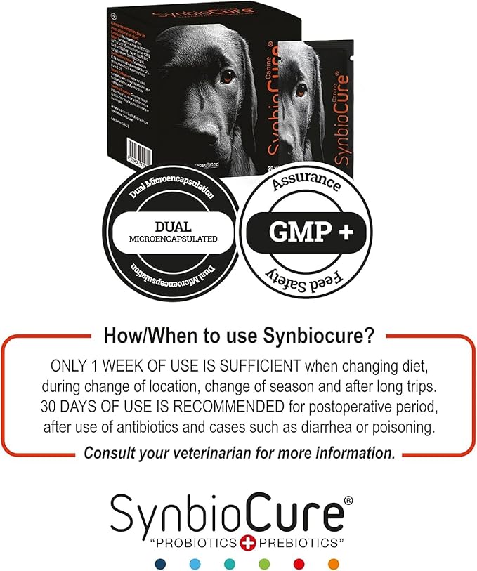 • All Breeds & Ages: Complementary feed with prebiotics and probiotics for adult dogs and puppies. They all deserve a healthy life with the Synbiocure miracle.