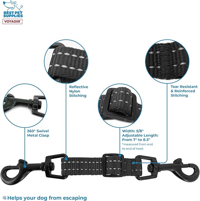 Best Pet Supplies Voyager Dog Collar Safety Clip with Dual Clasps, Collars and No Pull Harness Connectors, Training for Walking, Running, and Hiking, Safety Clip - Black