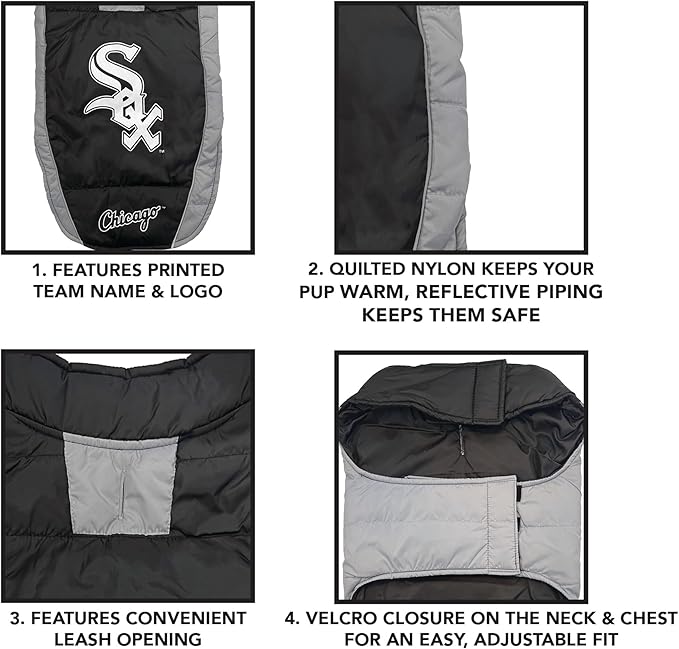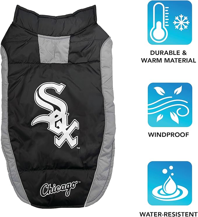 Pets First MLB Chicago White Sox Puffer Vest for Dogs & Cats, Size Medium. Warm, Cozy, and Waterproof Dog Coat, for Small & Large Dogs/Cats. Best MLB Licensed PET Warming Sports Jacket (WSX-4081-MD)