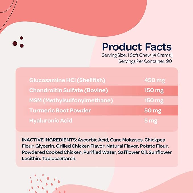 • Snout to Tail Benefits - Our turmeric and glucosamine chews for dogs are a great way to offer hip and joint support for dogs of all ages while also supporting daily activity mobility and flexibility