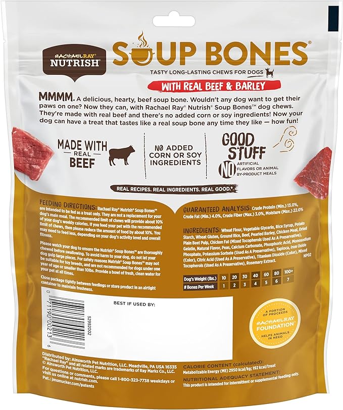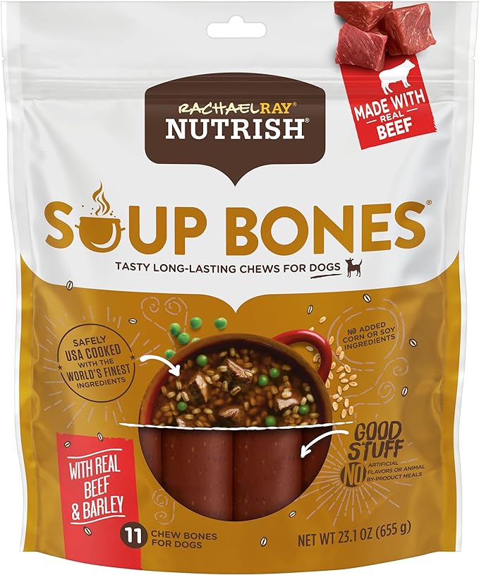 Nutrish Rachael Ray Beef, Pea & Brown Rice 28 Pounds Dry Dog Food + Beef Recipe 11 Count Soup Bones Bundle